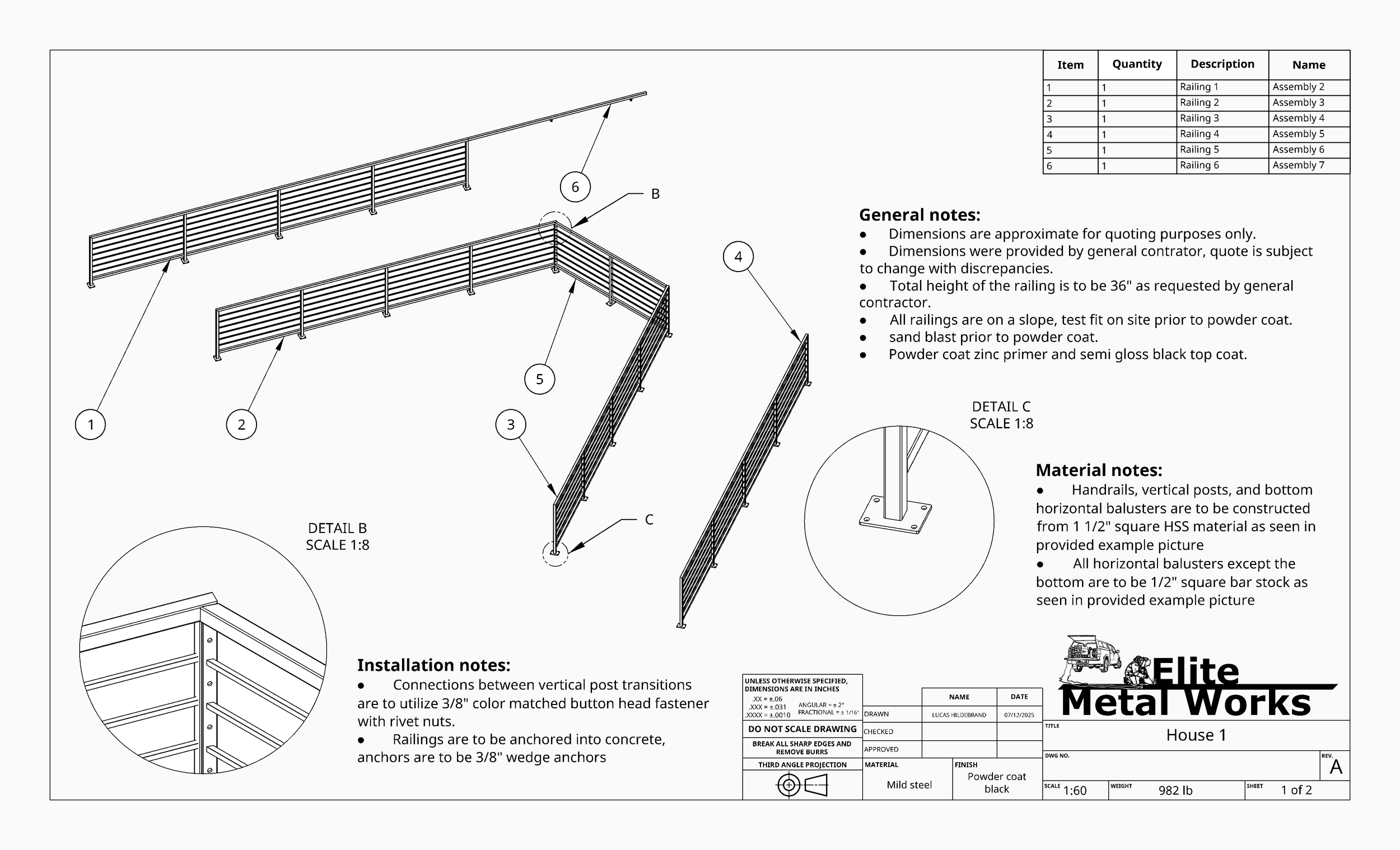 We handle all on-site measurements and layout planning, ensuring a precision fit for your custom railings. Every project is fabricated in continuous sections up to 20 feet long, ensuring maximum structural rigidity and a clean, uninterrupted architectural flow.